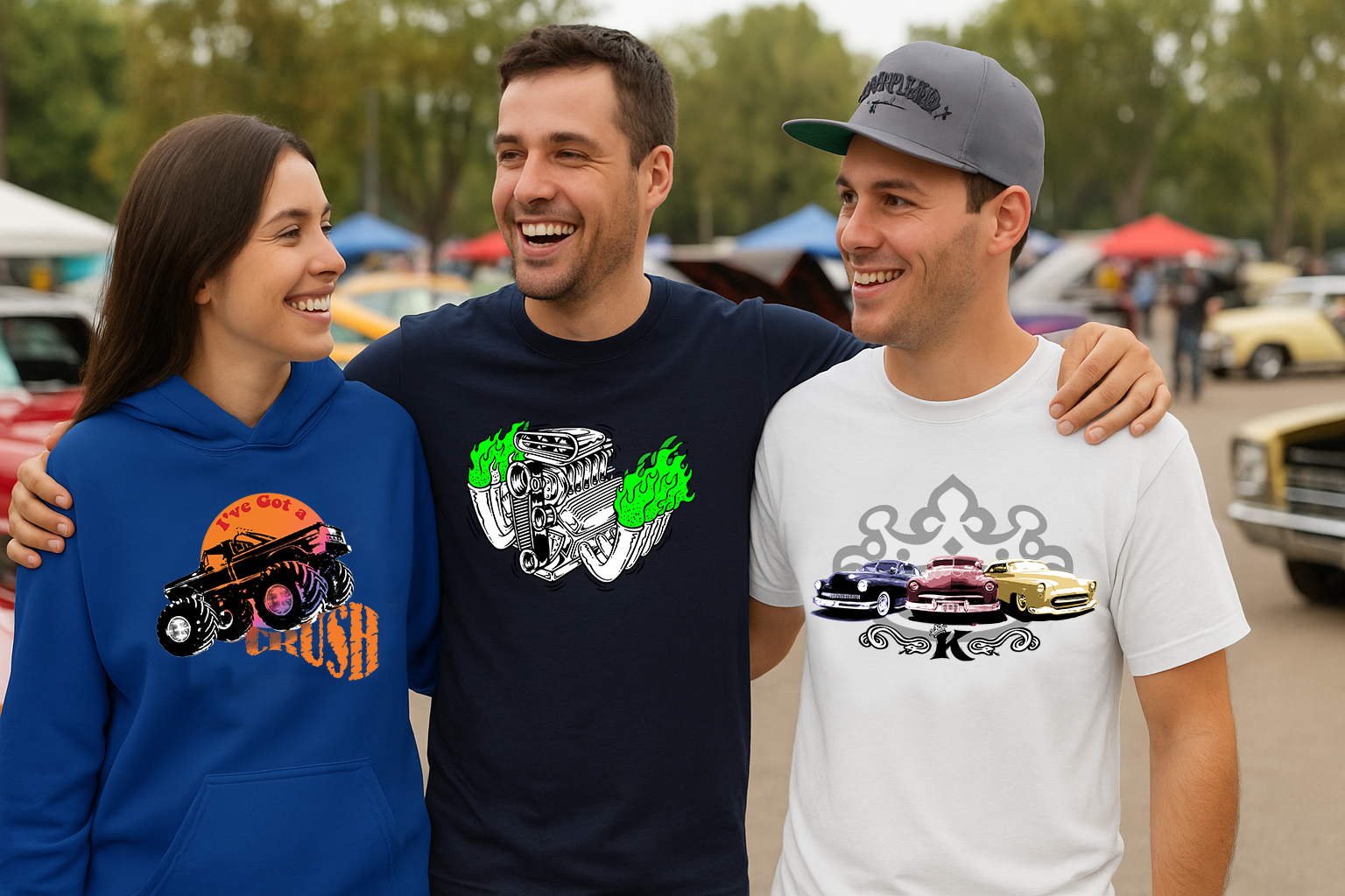 American Muscle Car Tee with Shield Design - bonspeed Red, White, Blue Car Logo