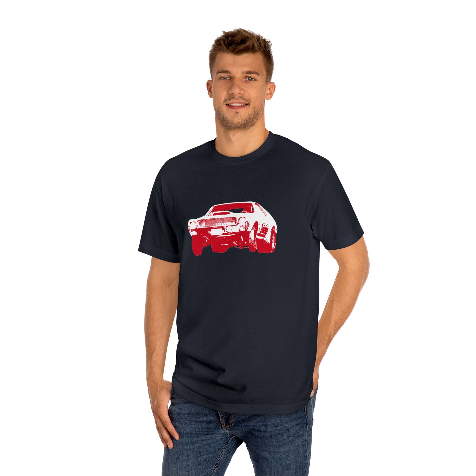 Rev up your look with the bold, high-octane energy of the AMX Drag Car Tee. The bright red, posterized photo seems to launch right off the chest, capturing the thrill and motion of classic American drag racing.