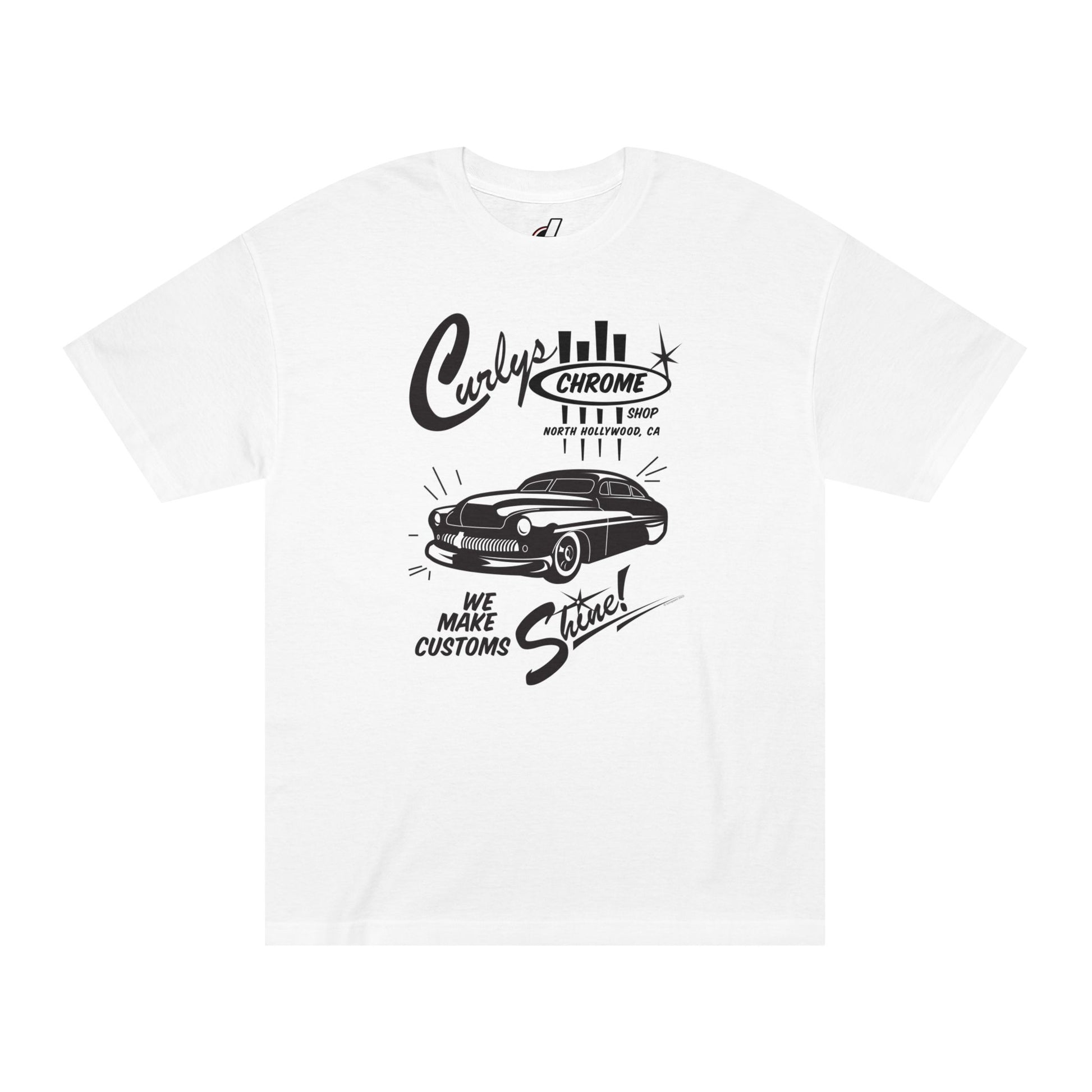 Step back into the golden age of hot rodding with the Curly’s Chrome Shop Tee, a tribute to one of North Hollywood’s most legendary automotive hubs. From the 1930s through the 1970s, Curly’s was the destination for racers, hot rodders, and Kustom car builders chasing perfection in chrome and steel. The shop’s legacy lives on through this re-issue from Bonneville Speed & Supply / bonspeed designs, blending history, craftsmanship, and California car culture into a wearable icon.