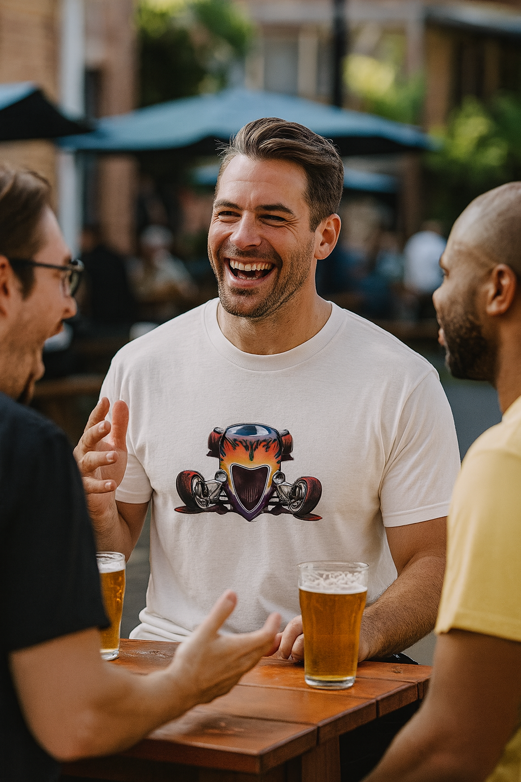 Fuel your style with the Fire Roadster Men’s T-Shirt, a tribute to one of the most legendary hot rods ever built. Showcasing a bold front-view design of the world-famous Fire Roadster, owned by Van Halen bassist Michael Anthony, this tee combines rock ’n’ roll energy with pure automotive attitude.