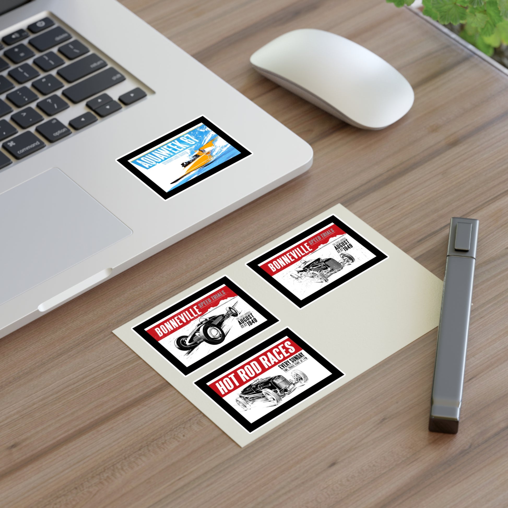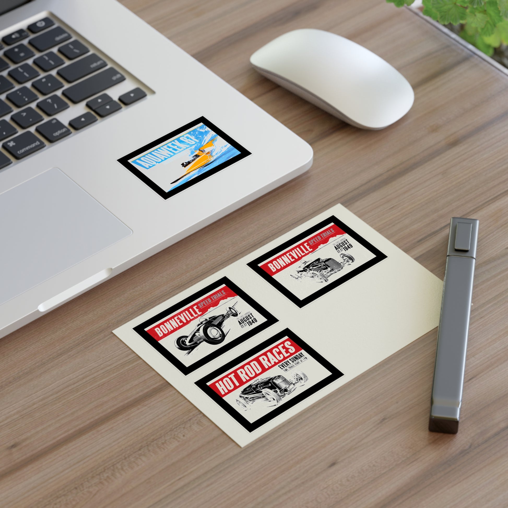 Carry the spirit of the 1950s wherever you go with the bonspeed Hot Rod & Salt Racer Sticker Sheet.
